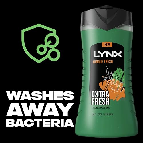 Lynx Men Jungle Fresh 3-in-1 Hair, Face and Body Wash Shower Gel with a palm leaf & amber scent for an all day fresh & clean feel 500 ml, Pack of 6