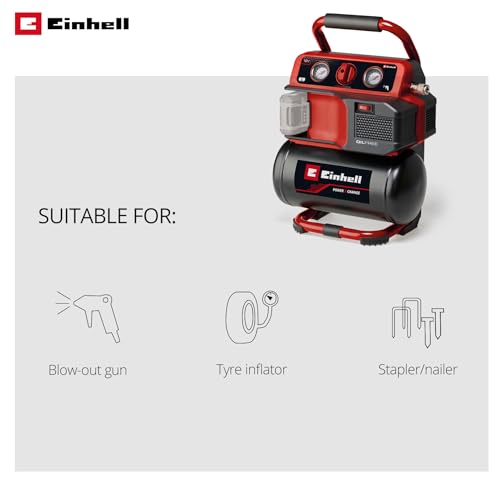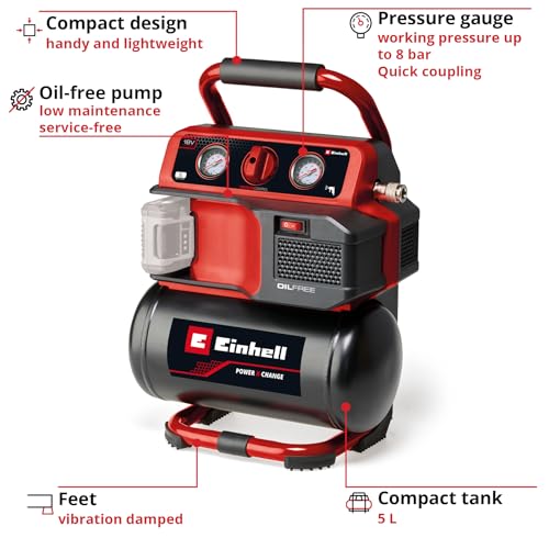 Einhell Power X-Change 18V Cordless Air Compressor - Oli-Free Portable Electric Pump and Tyre Inflator for Workshops with 5L Tank - TE-AC 18/75 Li of Rechargeable Compressor (Batteries Not Included)