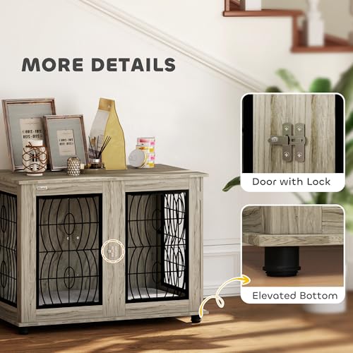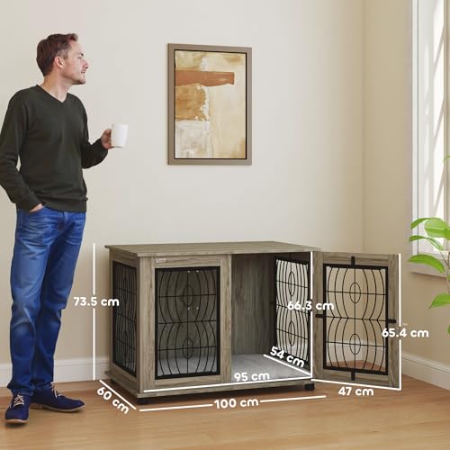 PawHut Dog Crate Furniture, Dog Cage with Soft Washable Cushion, Furniture-Style Pet Kennel Indoor House End Side Table for Small Medium Large Breeds, 100 x 60 x 73.5 cm, Grey