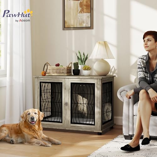 PawHut Dog Crate Furniture, 37\ End Table for Large Dogs w/ Cushion