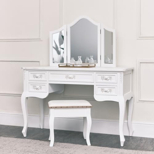 Melody Maison Antique White Triple Dressing Table Mirror - Pays Blanc Range White