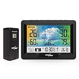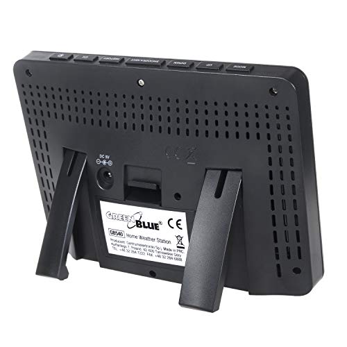 Green Blue GB540 Digital Color Weather Station with Outdoor Indoor Sensor, Radio-Controlled Clock by DCF System, Moon Phases, Barometer, Calendar, Weather Forecast Station for Home, Black
