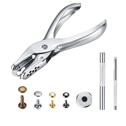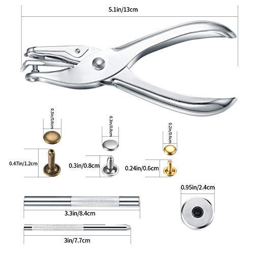 360PCS Leather Rivets, 3 Sizes Metal Double Cap Tubular Rivets, with Leather Hole Punch Pliers and Fixing Tool Kit, for DIY Leather Craft Repairs Decoration (Gold/Silver/Bronze/Black)
