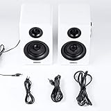 Sanyun SW208 3" Active Bluetooth 5.0 Bookshelf Speakers – 60W Carbon Fiber Speaker Unit - Built-in 24bit DAC - Dynamic 3D Surround Sound – 2.0 Computer PC Monitor Gaming Speakers (Pair, White)