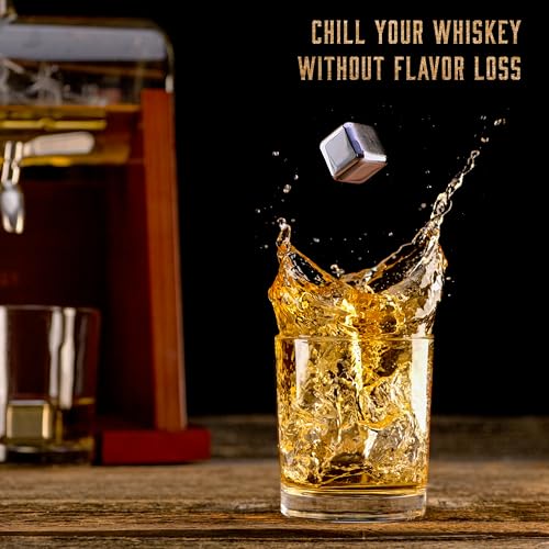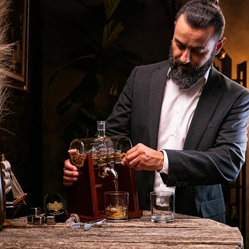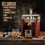 WHISISKEY - Whiskey Decanter Set - 1100ML Ship Carafe - Whiskey Gift Sets for Men - Whisky Set - Glass Gifts for Men - Inc. 2 Whiskey Glasses, 4 Whiskey Stones, Accessories